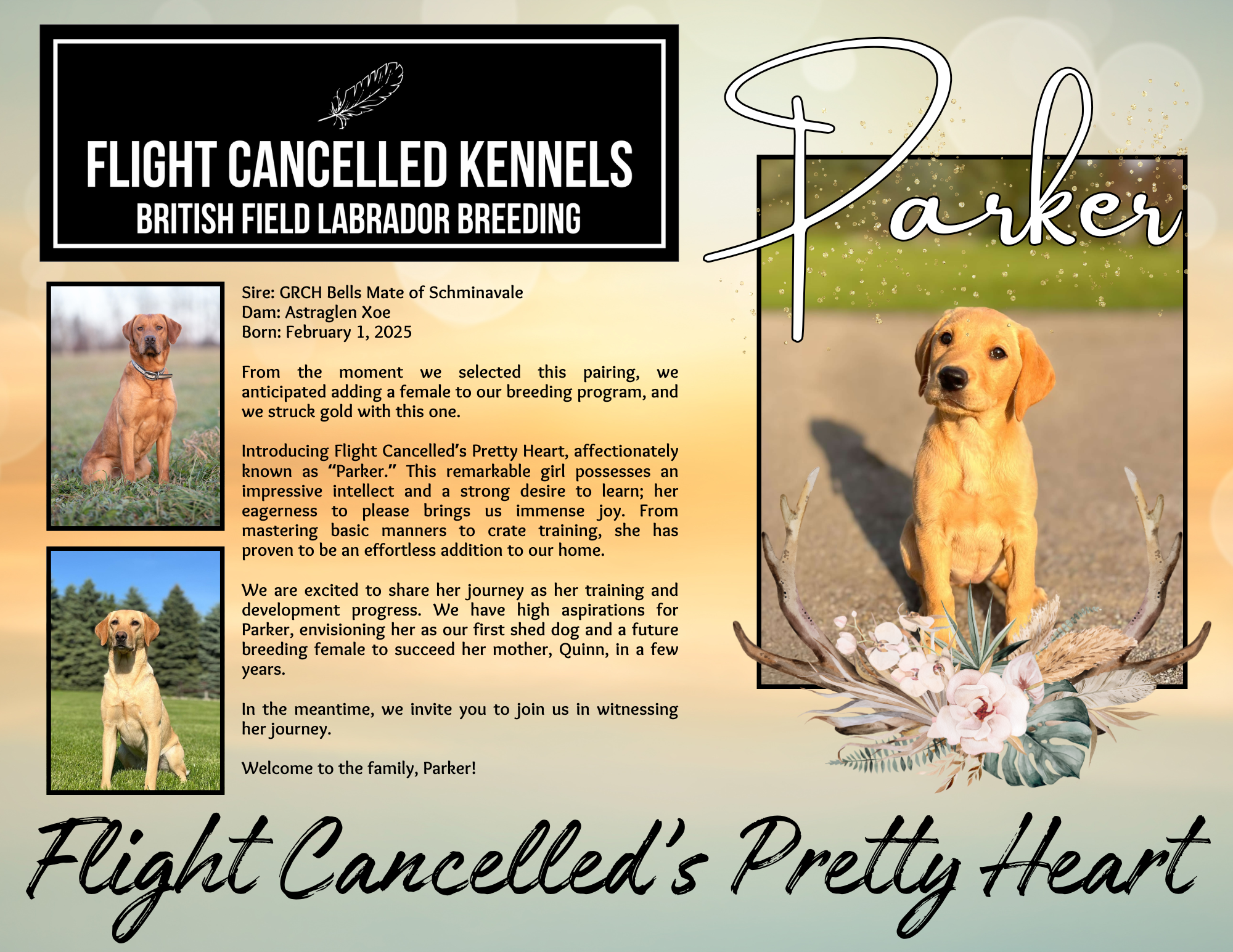 SPECIAL THANKS TO JEREMY CRISCOE OF WHISTLING WINGS KENNEL for helping this dream seem possible.